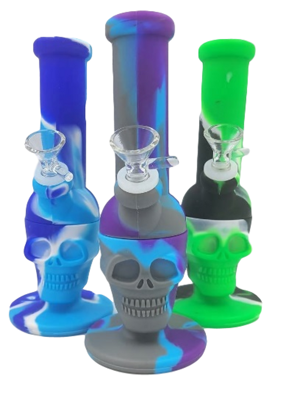 10’’ Straight Skull Silicone Water Pipe 10ct Jar
