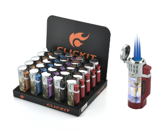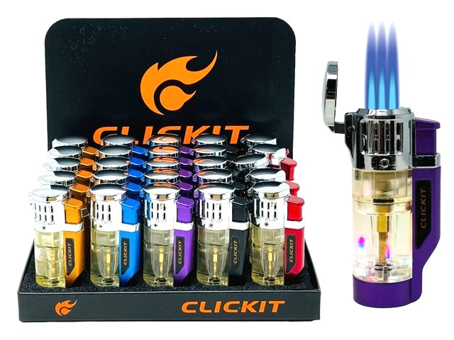 Clickit 3 Flame Transparent Body Torch Lighter With LED 25ct Display Box GH-10897