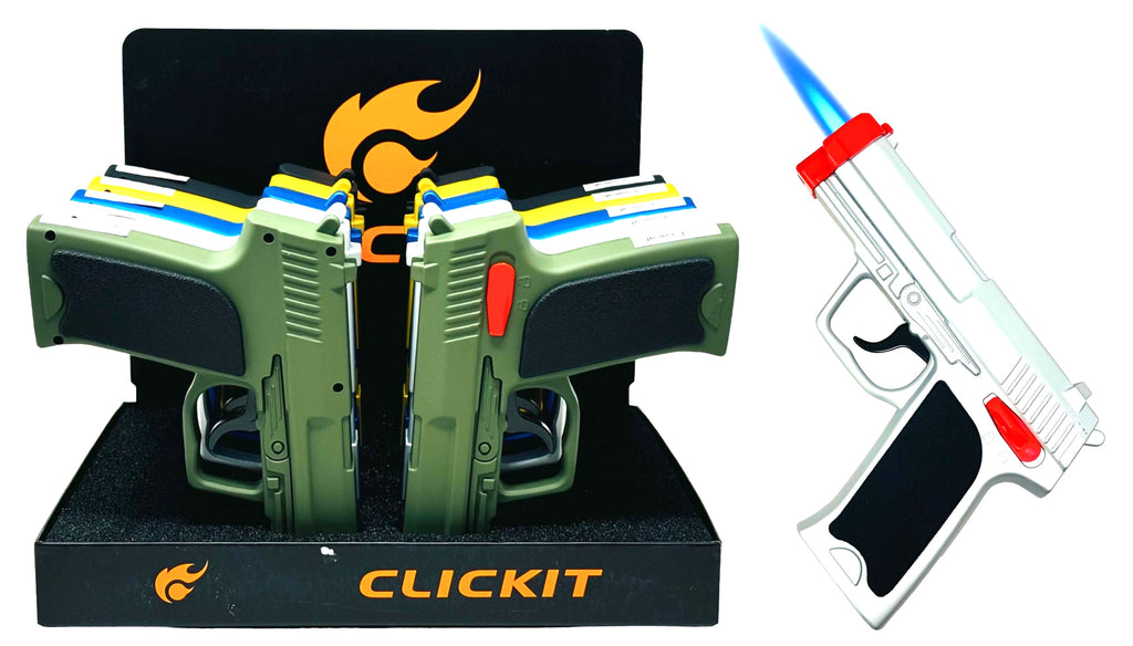 Clickit Large Pistol Gun Torch Lighter 10ct Display Box GH-9073