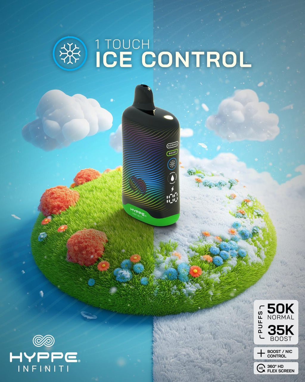 Hyppe Infiniti 50,000 Puffs 360* HD Flax Screen 5% Nic Disposable Vape 5ct Display Box