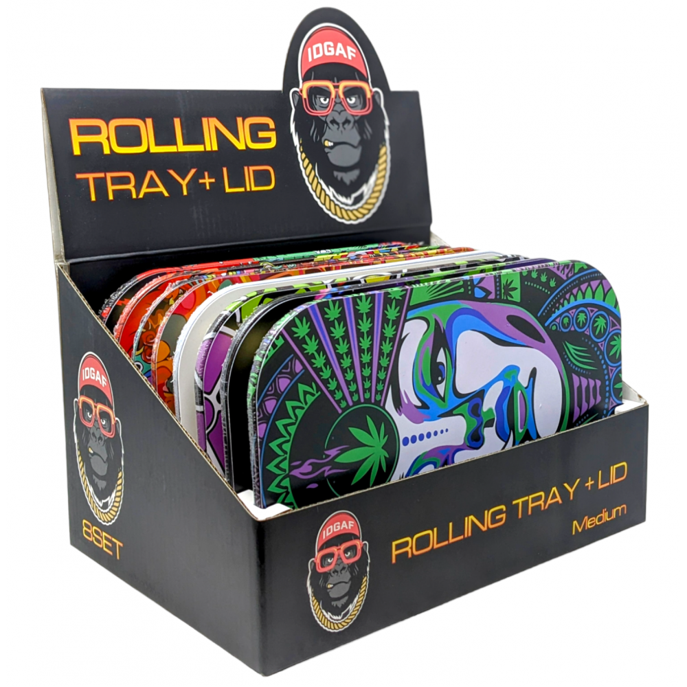 IDGAF Rolling Tray with Magnetic Lid 8ct Display Medium #MTL400