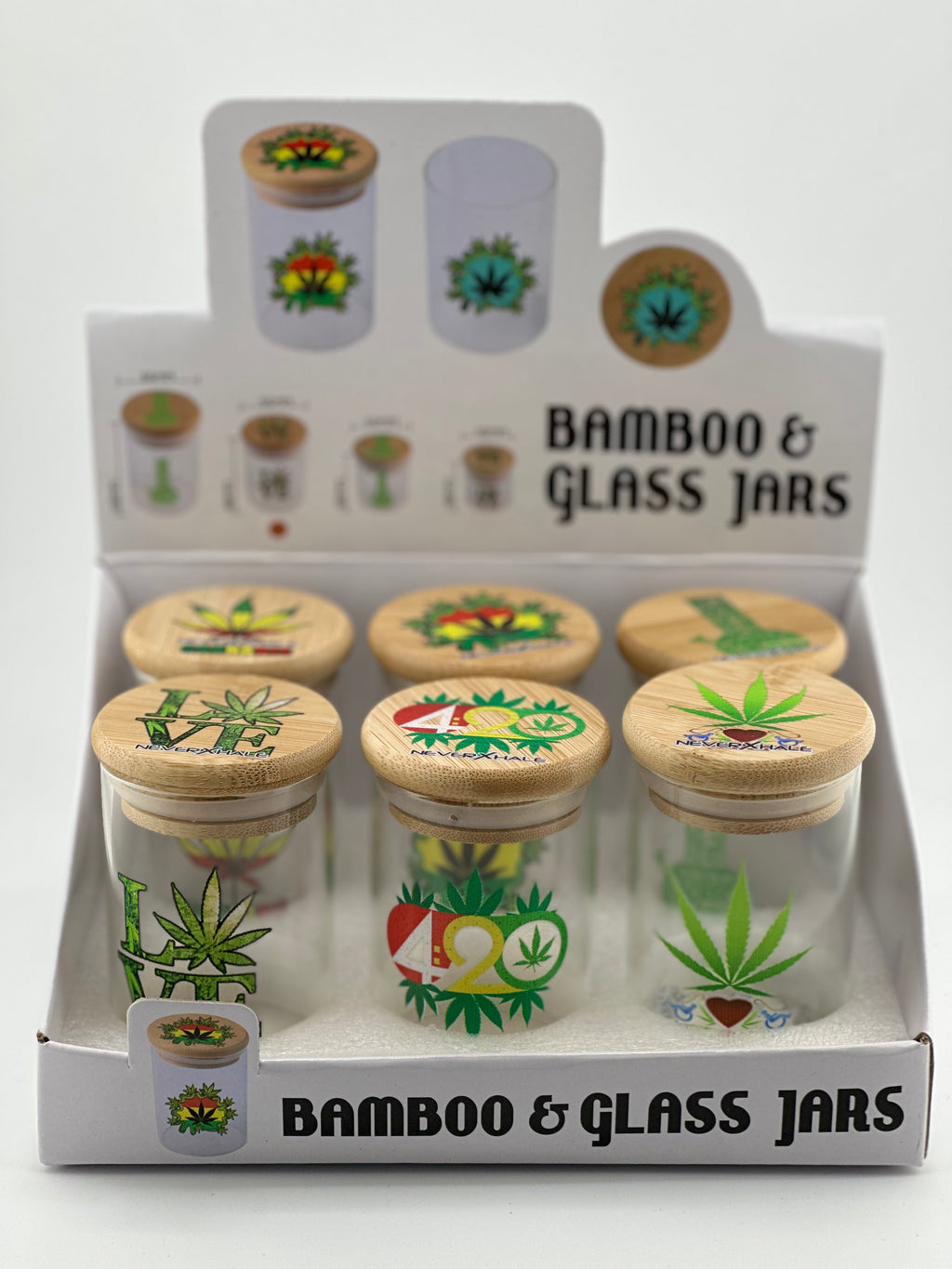 NEVER EXHALE Glass Storage Jar with Bamboo Lid 420 55mm 6ct box #30471-1
