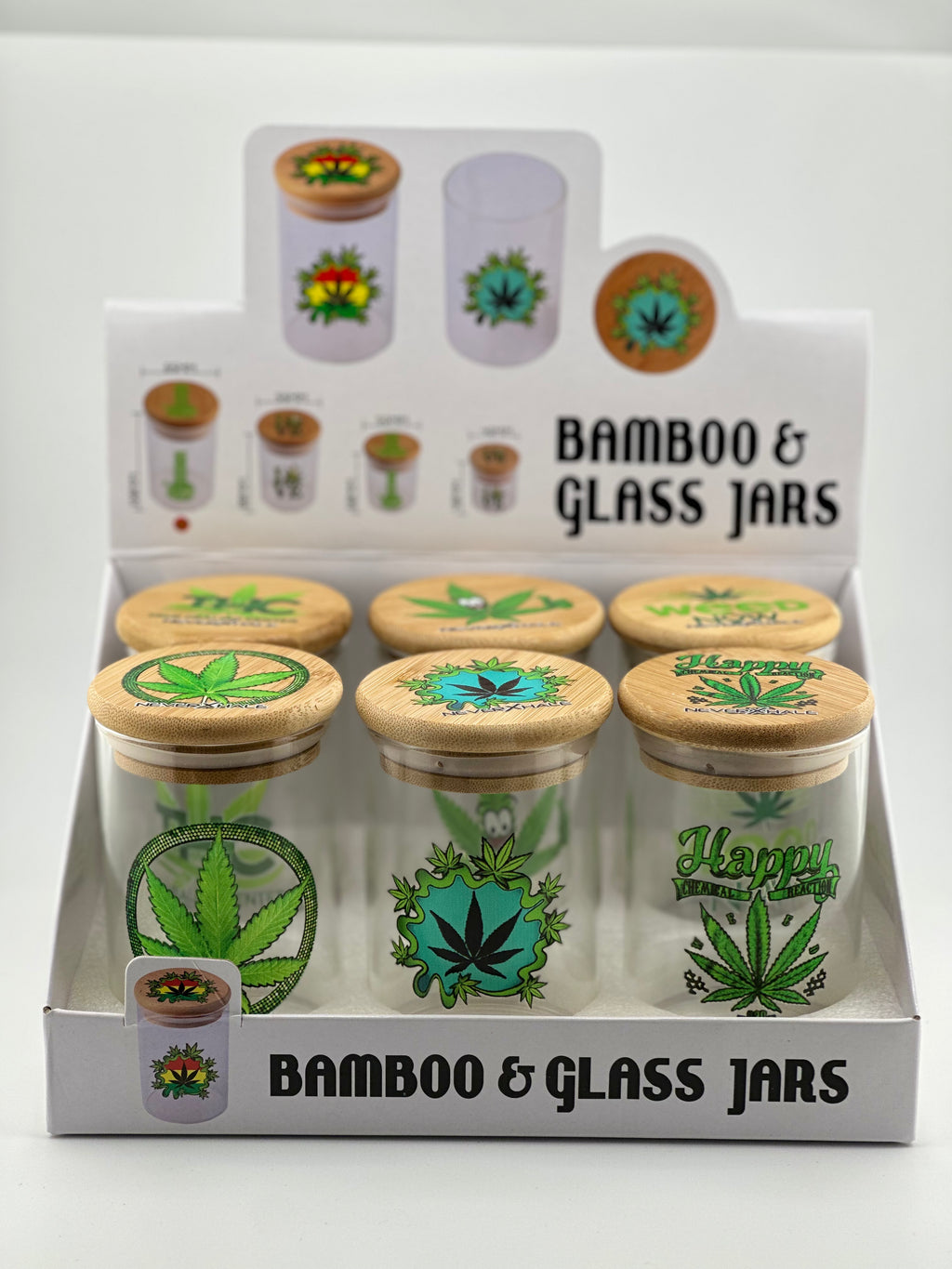 NEVER EXHALE Glass Storage Jar with Bamboo Lid 65mm 6ct box #30472-2