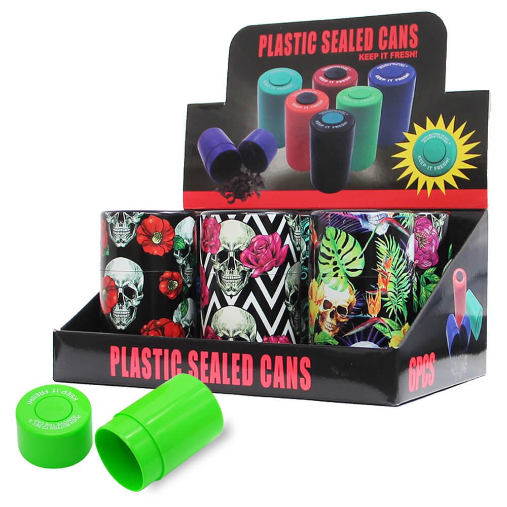 Plastic Sealed Cans Skull Colors 6ct Display