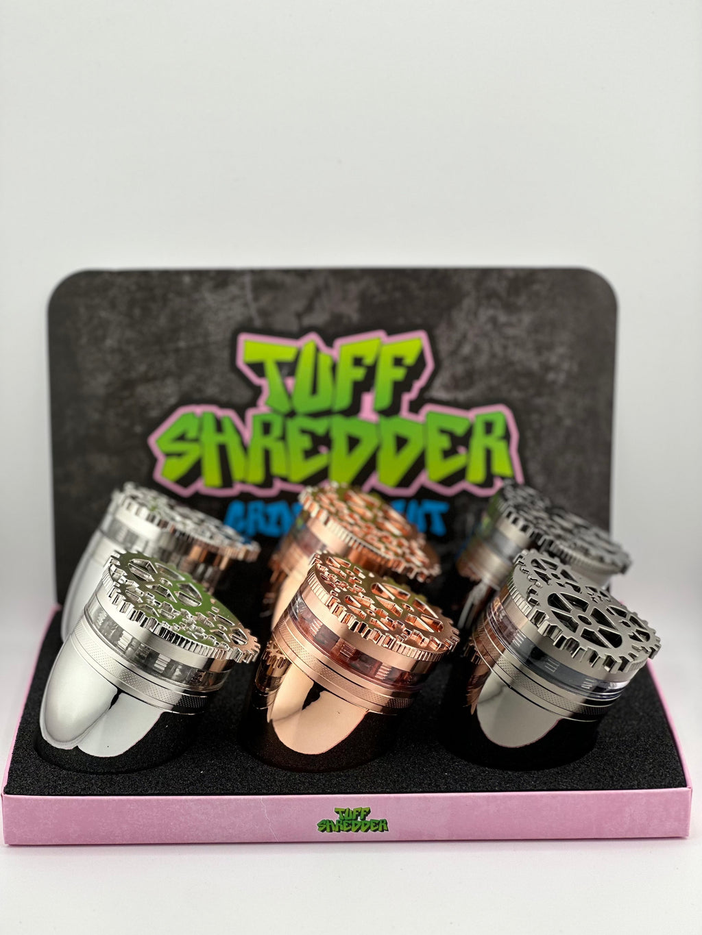 Tuff Shredder Curved Rudder Herb Grinder 4pc Layer Zinc Wood With LED Lights Gear Wheels TS10013 6ct Display