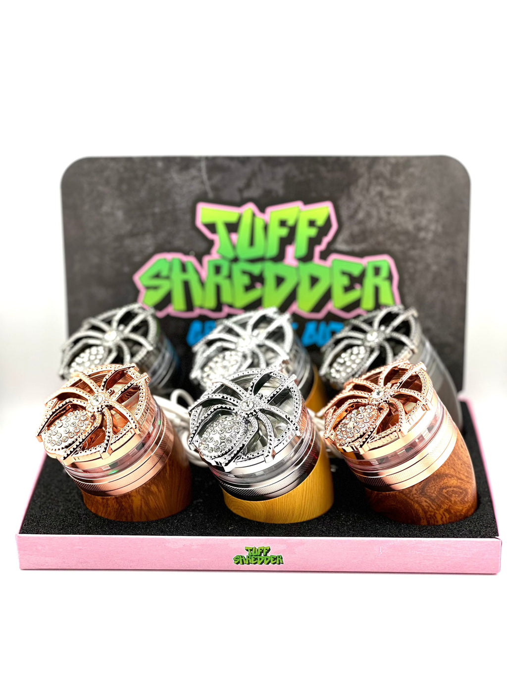 Tuff Shredder Curved Rudder Herb Grinder 4pc Layer Zinc Wood With LED Lights Spider #TS10022 6ct Display