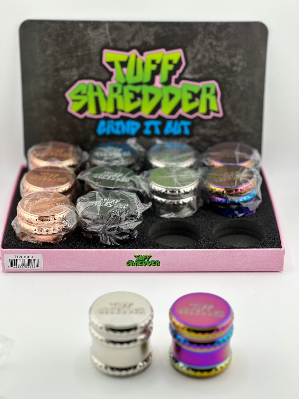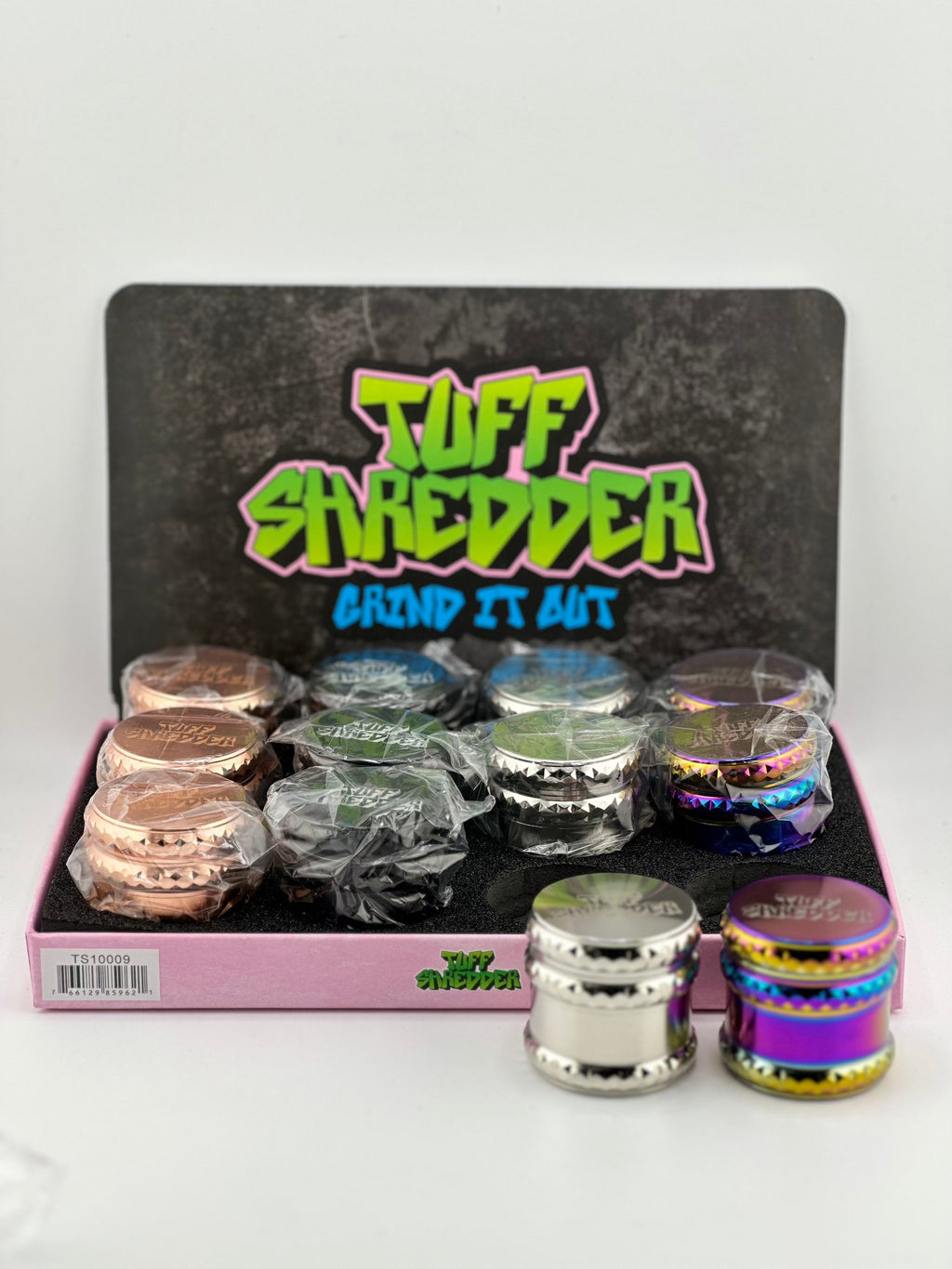 Tuff Shredder Grind It Out Mini Tobacco Grinder 4pc 12ct Display #TS10009