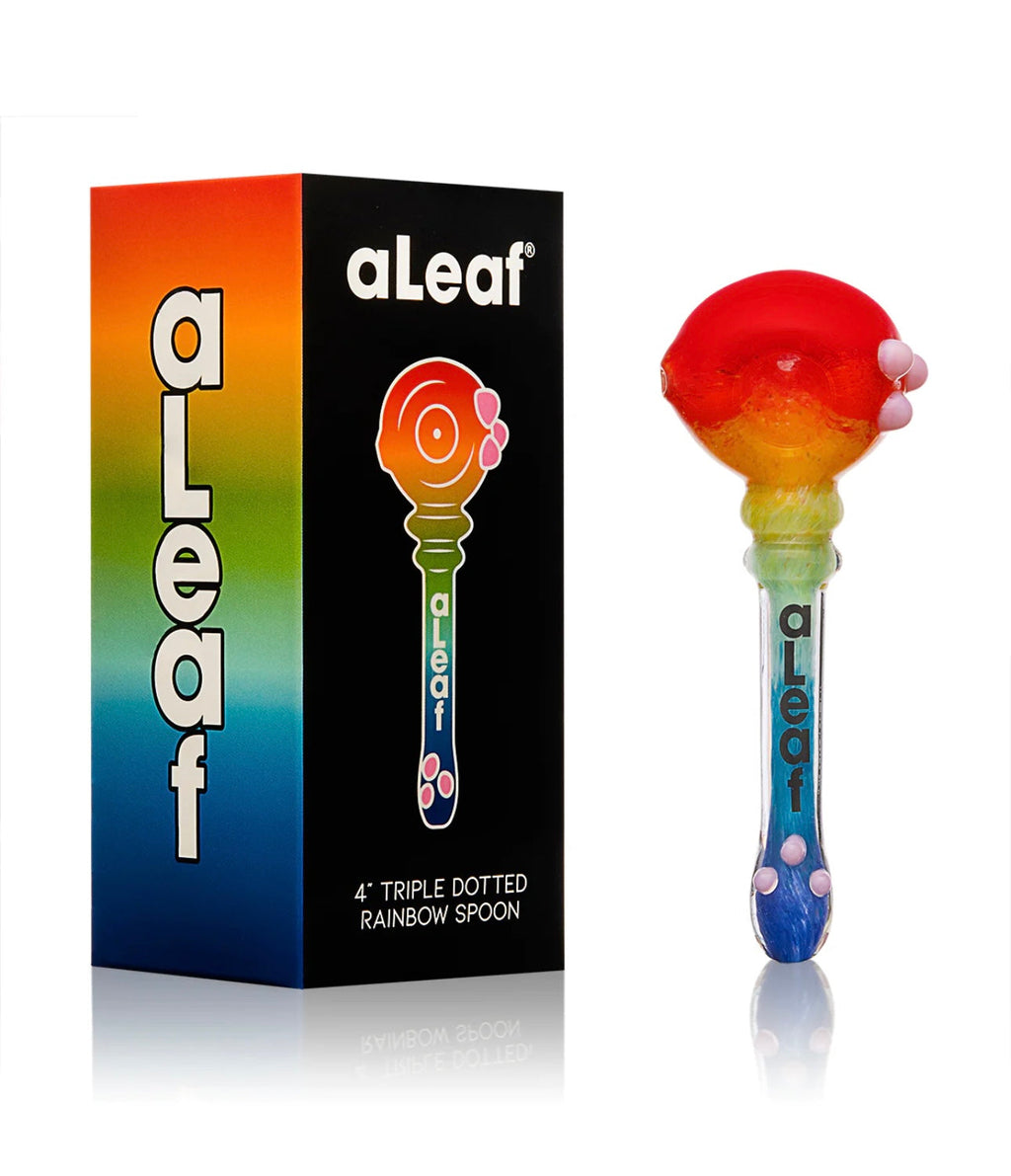 ALeaf® 4’’ Triple Dotted Rainbow Spoon Hand Glass Pipe 1ct #ALHP5035